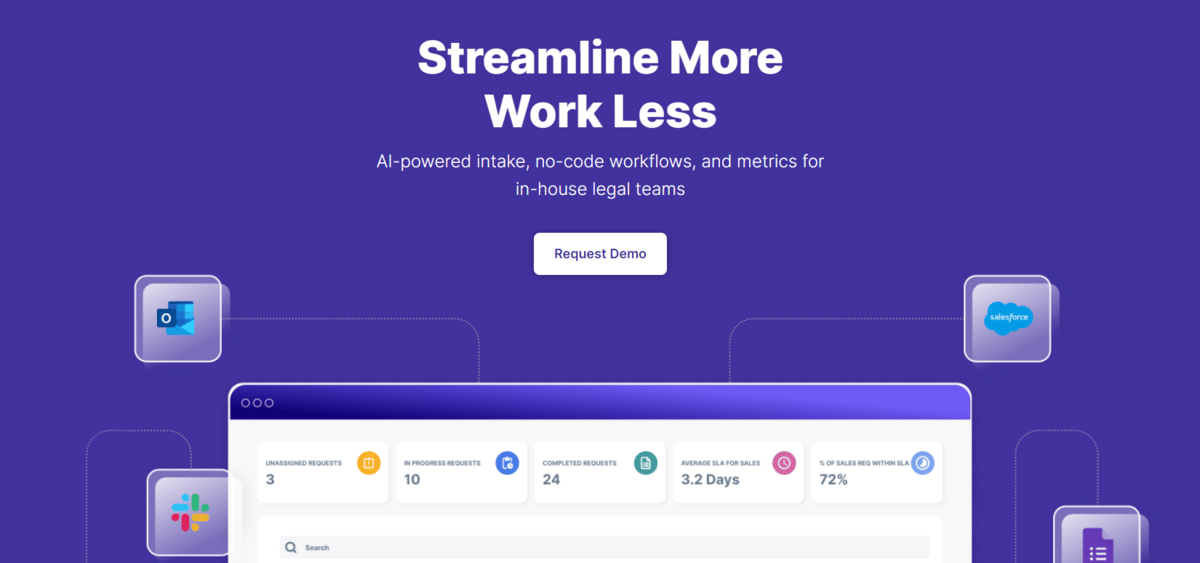 Streamline is an intake and workflow platform designed for in-house legal teams to collaborate better with the business and to work more efficiently internally with each other. The company's dashboard helps teams to improve legal and business relationships by giving automated updates and workflow by eliminating manual tasks and creating built-in reports for clients.