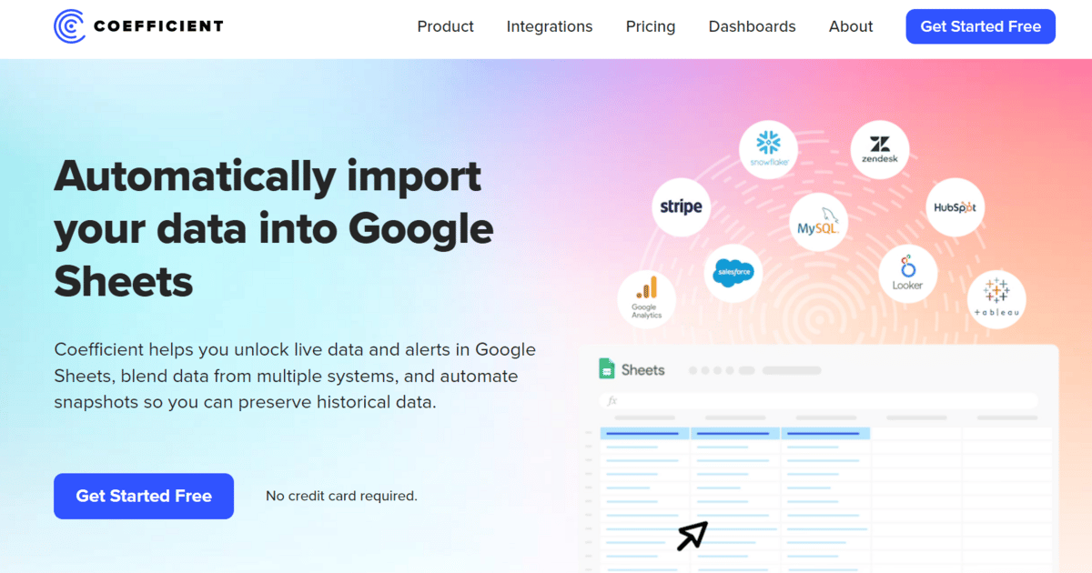 Coefficient is a no-code solution that allows business teams to work with real-time data directly from their spreadsheets. Users can sync Google Sheets to company systems such as Salesforce, Hubspot, Google Analytics, Looker, MySQL, Redshift, Slack and more.