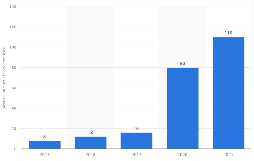 The number of SaaS apps used by companies 10x'ed to 110 apps over 5 years from 2016 to 2021. Enterprises have even more with ~240 apps on average. This has naturally led to a need for integrating SaaS apps. Or else 50% of a knowledge worker's job would be manually copying data. Take for example a salesperson capturing leads into their CRM. They'd have to manually download CSVs of leads generated from Marketo campaigns, then reformat the data so it could be uploaded to Salesforce. Every, single, time. Hence, we see the rise of iPaaS companies like Zapier and Workato. SaaS buyers/end-users use iPaaS tools to connect two or more SaaS apps together to copy data (like in the case of the salesperson above) or to start a workflow.