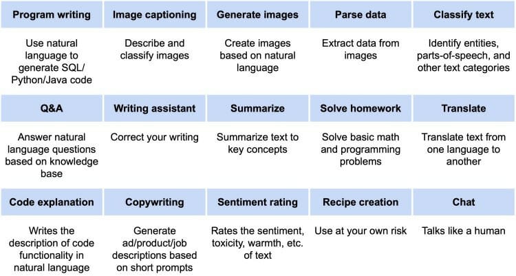 Underlying technologies have made significant advances and models will only continue to improve: Google’s PALM was shown to be better than the average human across a wide range of language benchmarks from Q&A to code explanation to logical deductions. And researchers are just getting started: experiments with more efficient algorithms, new distributed computing tools, and multimodal models continue to yield steady improvements.