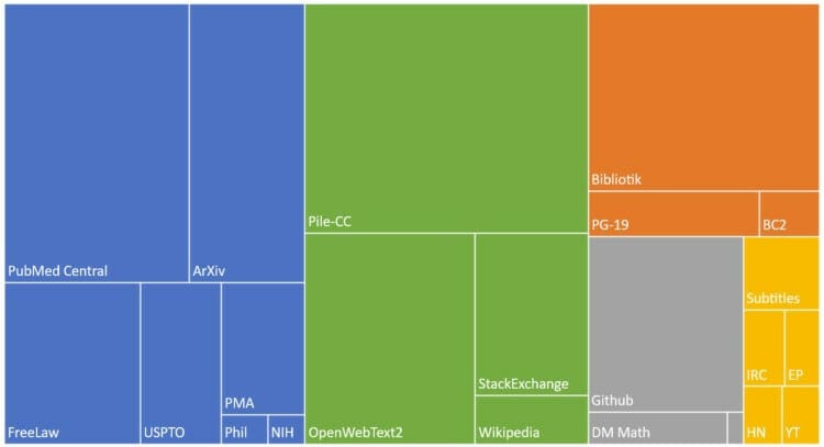 Scale is a key element of these models. Scale is enabled by improvements in hardware, the emergence of powerful models that can be parallelized (transformers), and the availability of large amounts of data for training (typically by self-supervised learning). In Figure 2 below, we show some of the open data sources used in training a large language model. The fact that such models are trained on a broad knowledge base makes them adaptable to a variety of downstream tasks.